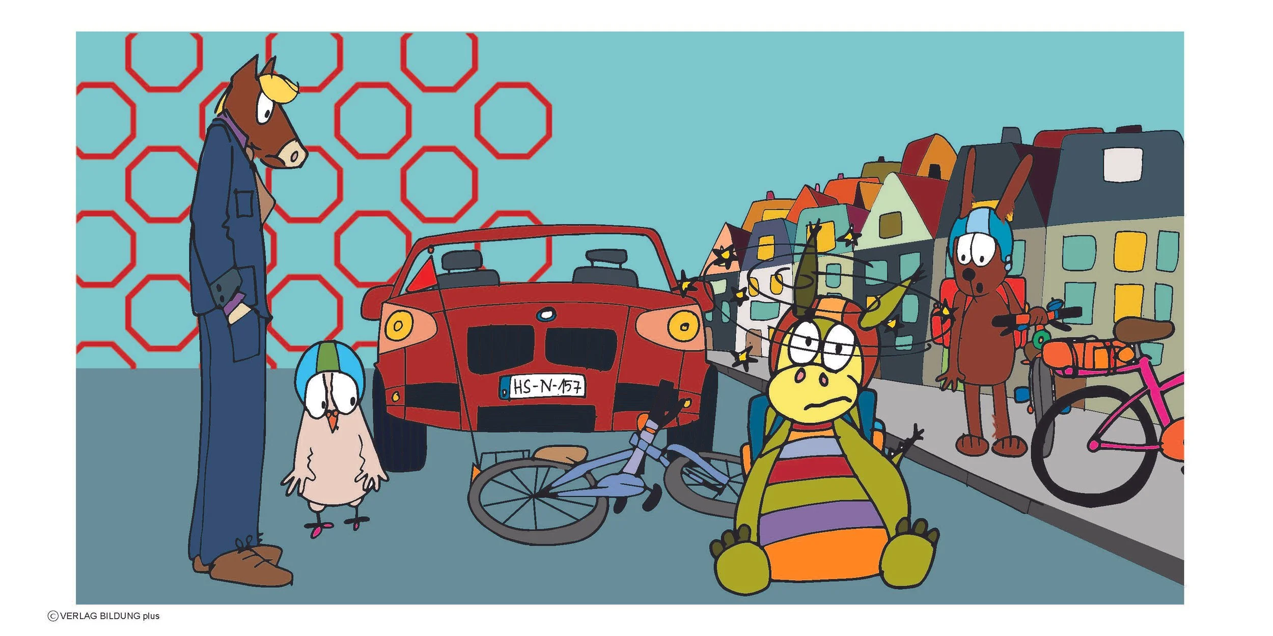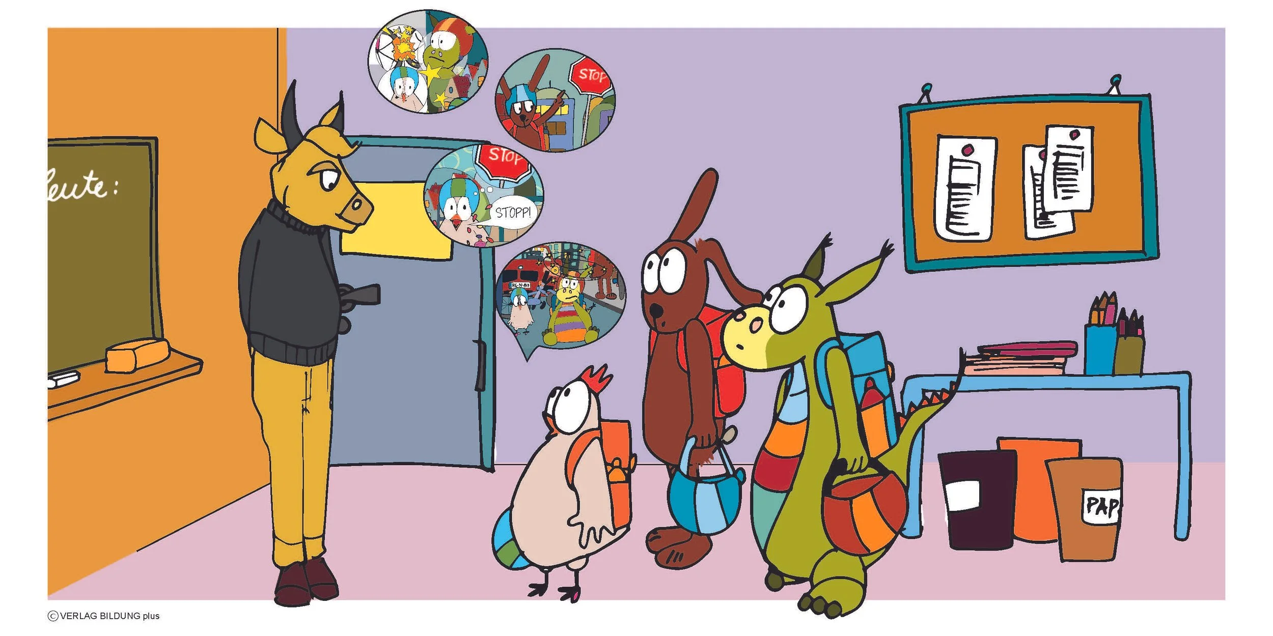 Die Illustrationen des Kinderbuchs "Stopp oder es kracht!" als Einzelbilder (PDF-Datei).